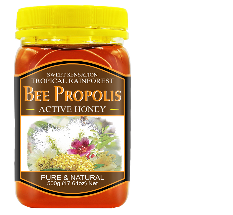 Dr Bee's Active Bee Propolis Honey is a rich blend of Bee Propolis and Wildflower Honey are used to create a distinctive mix of fresh flavour, pleasant aroma and taste that will delight all honey lovers. Bee Propolis is a blend of resinous sap from trees, honey, beeswax, and enzymes produced by the bees. It is a sticky brown or black substance with a pungent & bitter taste and pleasant odour. Honey enhanced with Bee Propolis may improve its nutrient value and delicious flavour while diminishing the tangy taste of Bee Propolis.