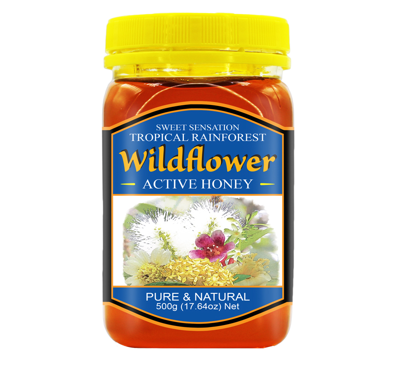 100% Pure, Natural and Active Wildflower honey is made by bees that have collected the nectar of numerous species of flowers or blossoms. The taste, colour, aroma and composition of wildflower honey will vary from season to season, depending on which flowers are dominant at the time the nectar is collected.